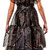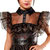 Composizione: Abito lungo in pizzo nero con spalle a sbuffo e volant in tulle. Cintura in tessuto nero. **Stivali e calze non inclusi. Parrucca non inclusa.